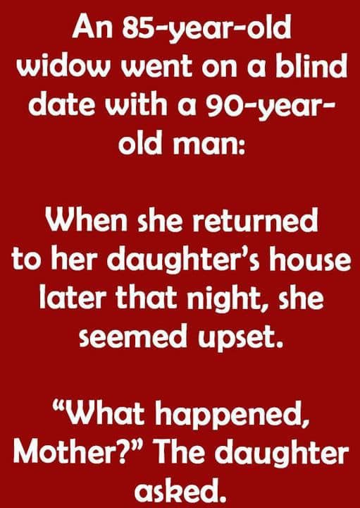 An 85-year-old widow went on a blind date with a 90-year-old gentleman.
