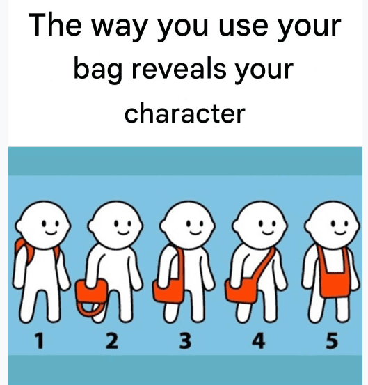 2. Carrying in hand If you like to carry your bag and other belongings in your hand, it means that you like to do everything completely and be in control of everything. You always want to be informed about what is going on and you have an opinion about everything. You are a simple but also reliable person.